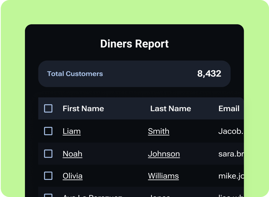Full access to your diner data — no gatekeeping, no reselling.